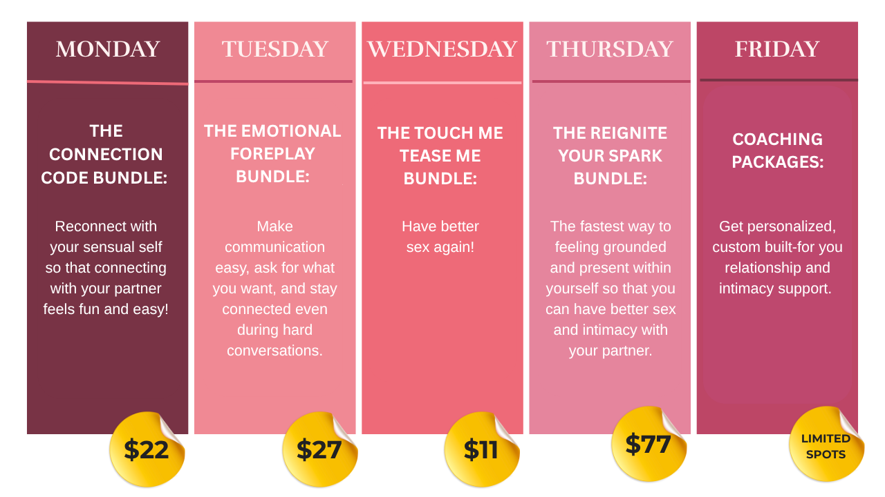 Each offer is designed to build another layer of emotional connection that makes physical intimacy feel natural, exciting, and mutually desired. Because when you master emotional foreplay… the physical kind gets a whole lot easier. 😉